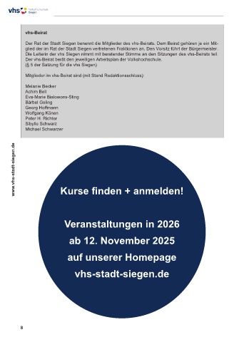 Der Rat der Stadt Siegen benennt die Mitglieder des vhs-Beirats. Dem Beirat gehören je ein Mit-