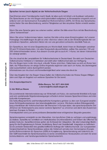 Homepage vhs-stadt-siegen.de gibt es unter »Service« einen Link zu den Einstufungstests der ver-