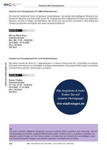Deutsch als Fremdsprache A1.2 mit Vorkenntnissen