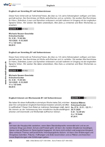 Englisch Intensiv am Wochenende B1 mit Vorkenntnissen 42390-1 B1
