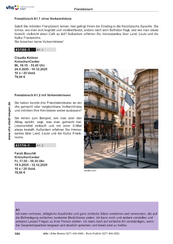 Französisch A1.2 mit Vorkenntnissen