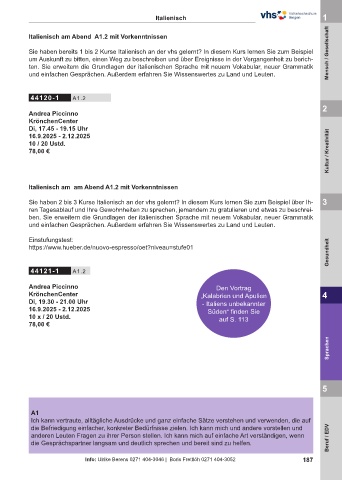 Sie haben 2 bis 3 Kurse Italienisch an der vhs gelernt? In diesem Kurs lernen Sie zum Beispiel über Ih- 3