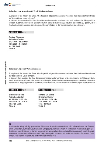 www.vhs-stadt-siegen.de www.vhs-stadt-siegen.de www.vhs-stadt-siegen.de Italienisch A2.1 mit Vorkenntnissen