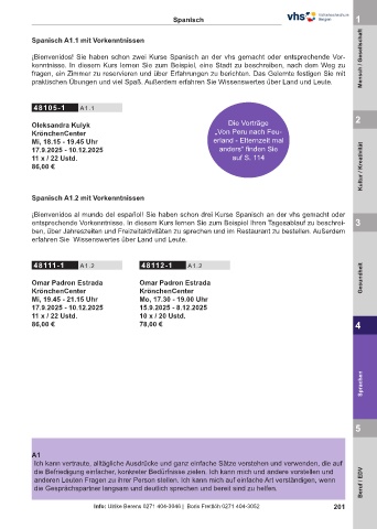 ¡Bienvenidos! Sie haben schon zwei Kurse Spanisch an der vhs gemacht oder entsprechende Vor- Mensch / Gesellschaft
