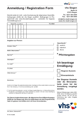 (AGB) der vhs Siegen (vgl. www.vhs-stadt-siegen.de oder Programmheft) einverstanden.