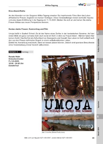 afrikanischer Frauen, begleitet von kurzen Vorträgen. Diese Veranstaltungen bieten wertvolle Impulse