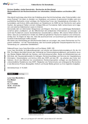 www.vhs-stadt-siegen.de www.vhs-stadt-siegen.de www.vhs-stadt-siegen.de IDA Desk, der Hauptannahmestelle für Anfragen, Rechercheaufträge und Services der Hauptabteilung