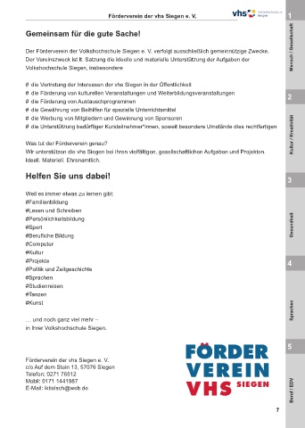 Der Förderverein der Volkshochschule Siegen e. V. verfolgt ausschließlich gemeinnützige Zwecke. Mensch / Gesellschaft