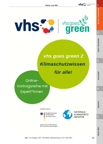Klima und Wir 1 Mensch / Gesellschaft Mensch / Gesellschaft 2 Kultur / Kreativität 3 Gesundheit 4 Sprachen 5 Beruf / EDV Info: Tina Wegener 0271 404-3048 | Gabriele Krämer 0271 404-3053 91