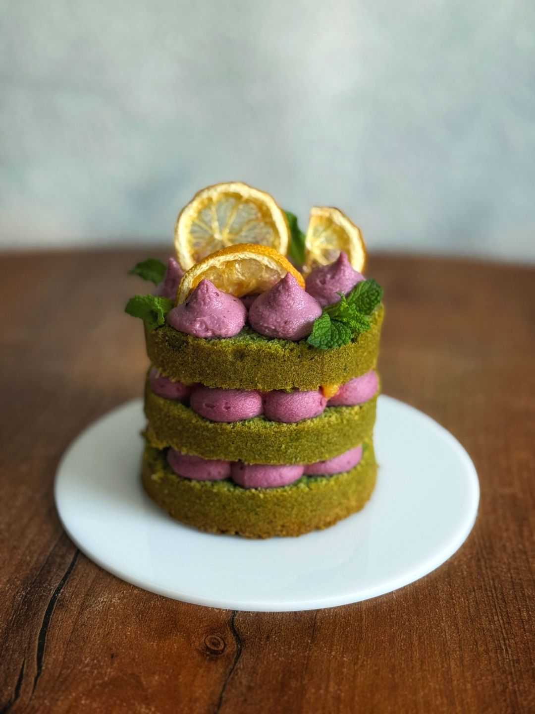 Minz-Spinat-Minitorte mit Heidelbeercreme und Lemon Curd
